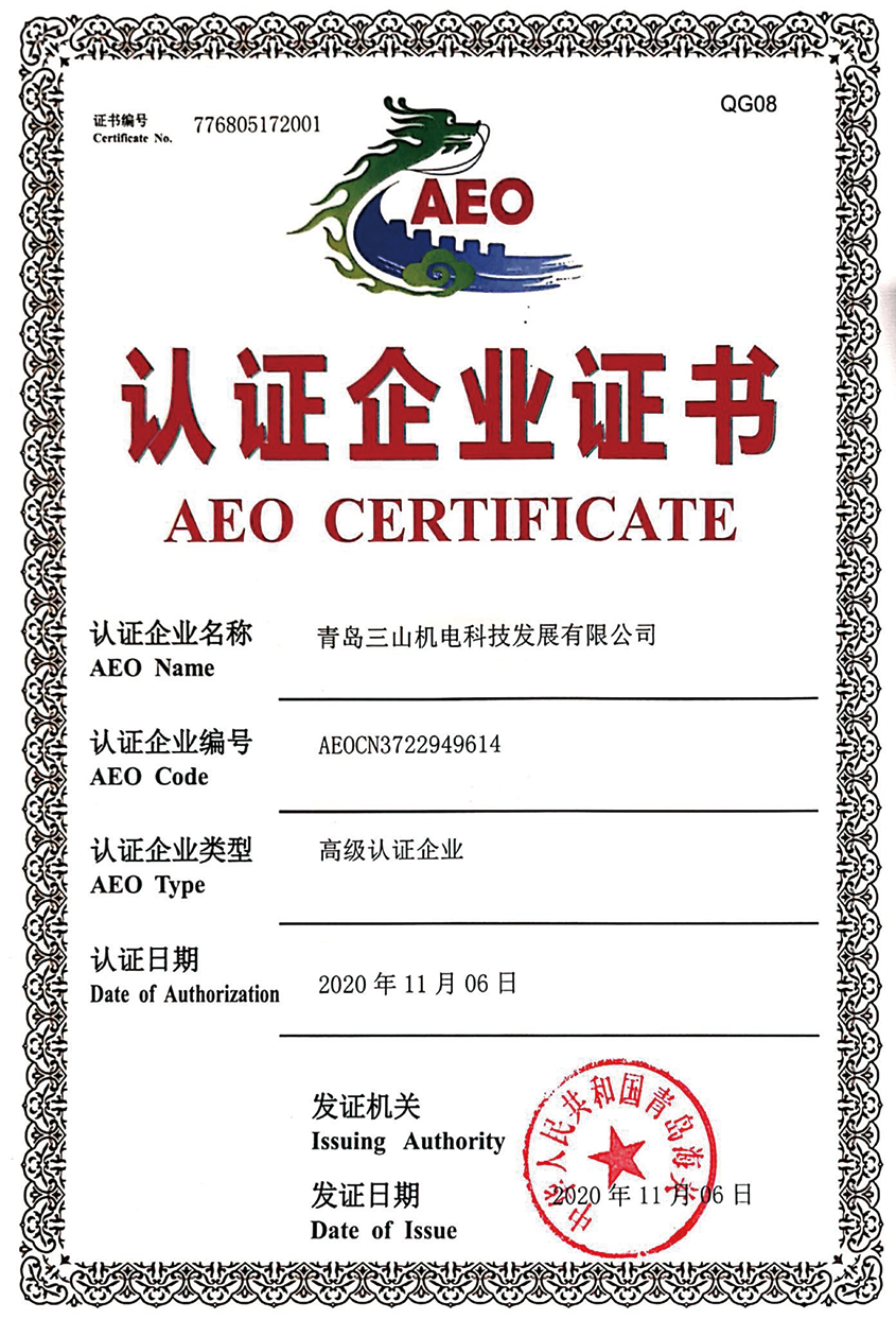 2020年,青岛公司机电科技发展有限公司成为胶州海关自2019.8月成立以来首批获得AEO高级认证的企业,它是企业从事进出口贸易的一张含金量极高的国际通行证。